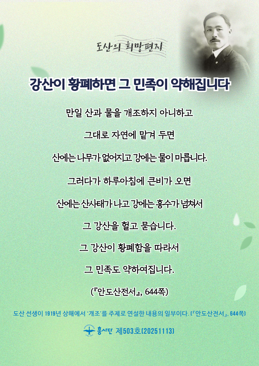 [도산의 희망편지] 강산이 황폐하면 그 민족이 약해집니다