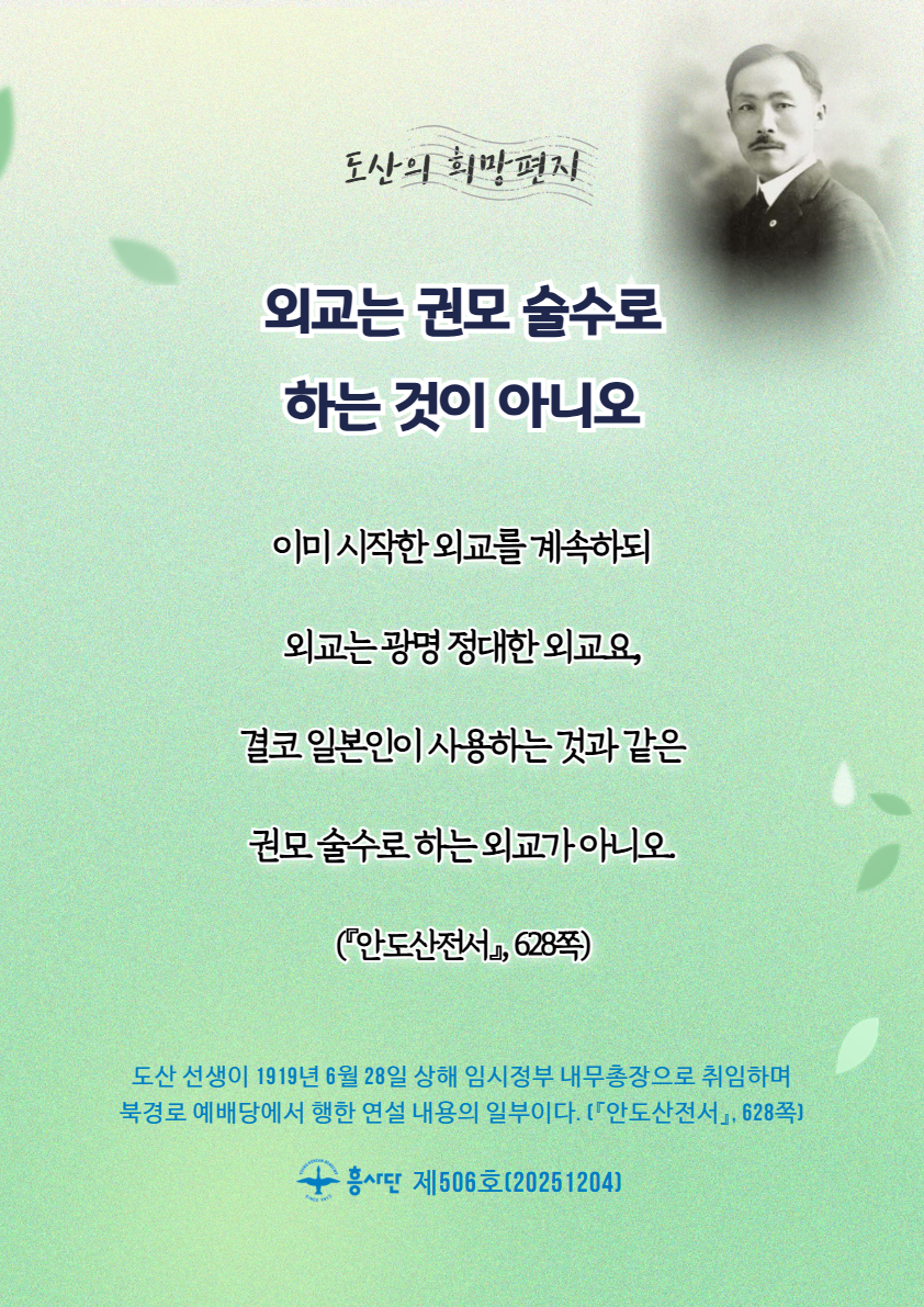 [도산의 희망편지] 외교는 권모 술수로 하는 것이 아니오