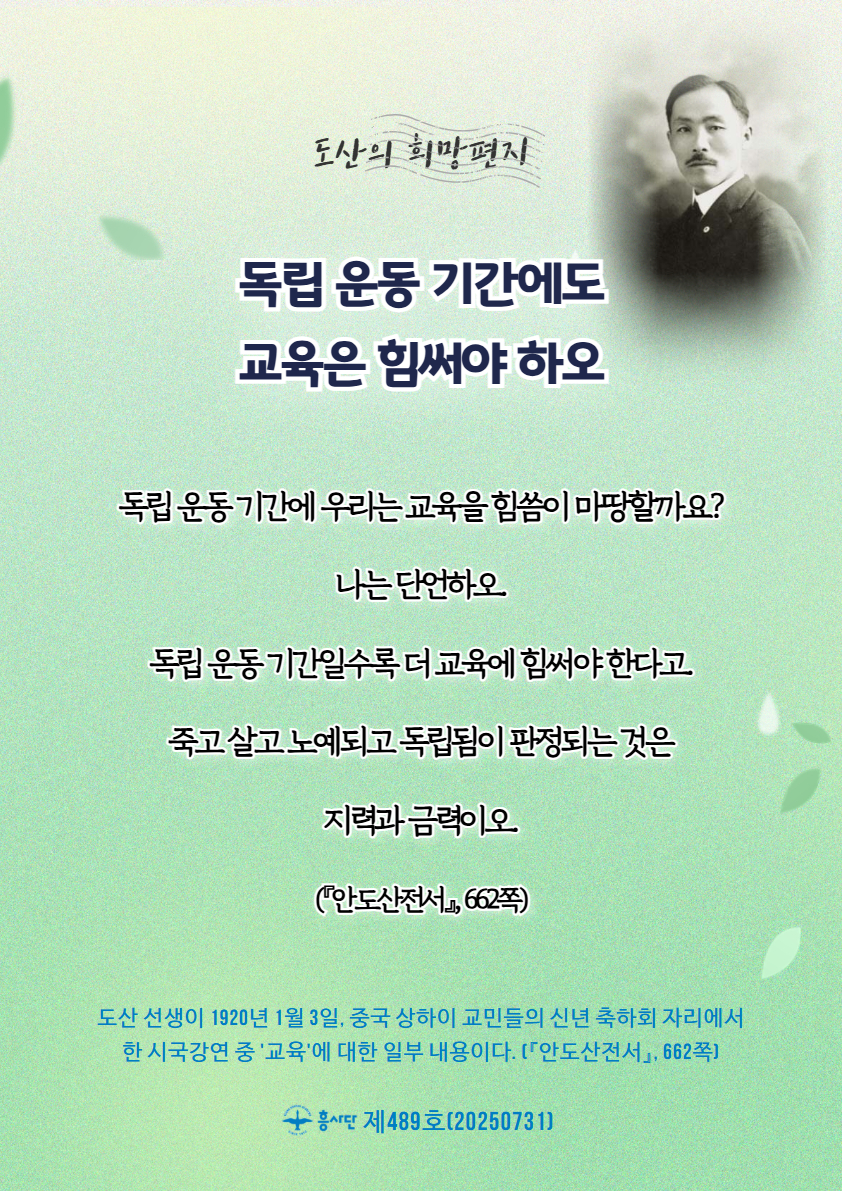 [도산의 희망편지] 독립 운동 기간에도 교육은 힘써야 하오