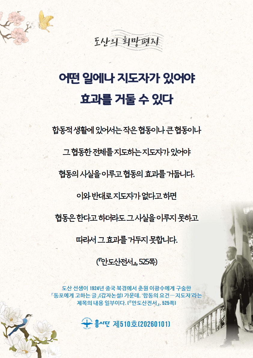 [도산의 희망편지] 어떤 일에나 지도자가 있어야 효과를 거둘 수 있다